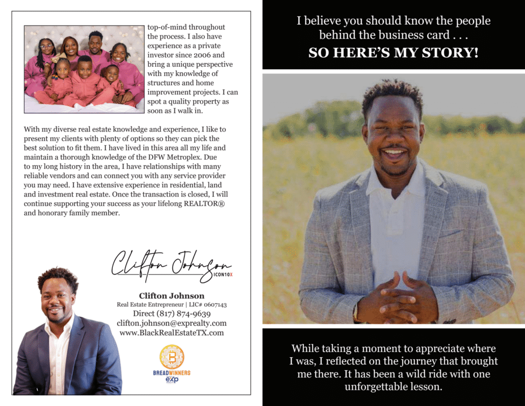 With years of experience and a passion for helping people build generational wealth, Clifton is more than just a real estate broker—he’s your personal guide to smarter decisions.